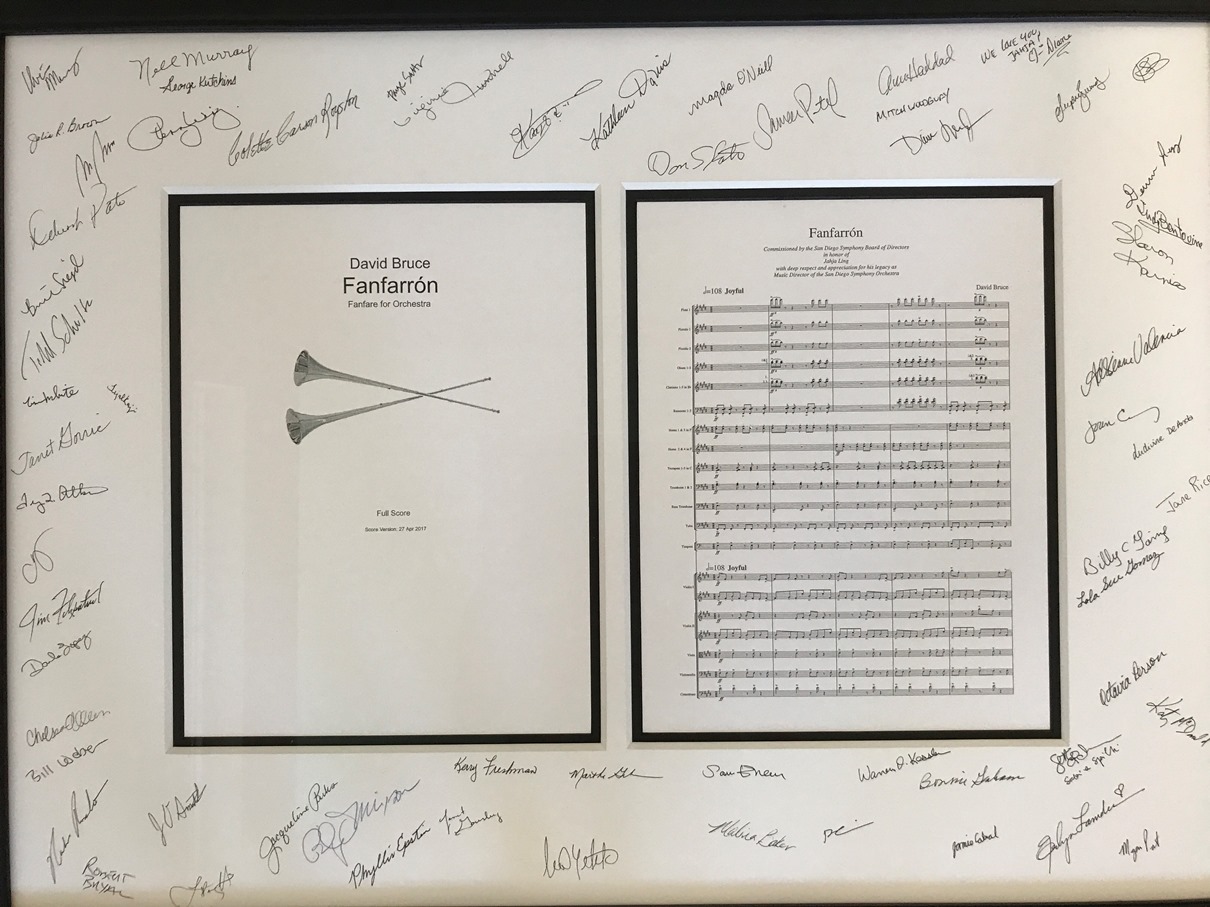 The San Diego Symphony recently premiered a new concert opener by David Bruce. The composer writes about his work: I was honoured to be asked by San Diego Symphony to write a celebratory fanfare in honour of their departing maestro Jahja Ling, who conducted the premieres of my Night Parade and the Violin Concerto Fragile…