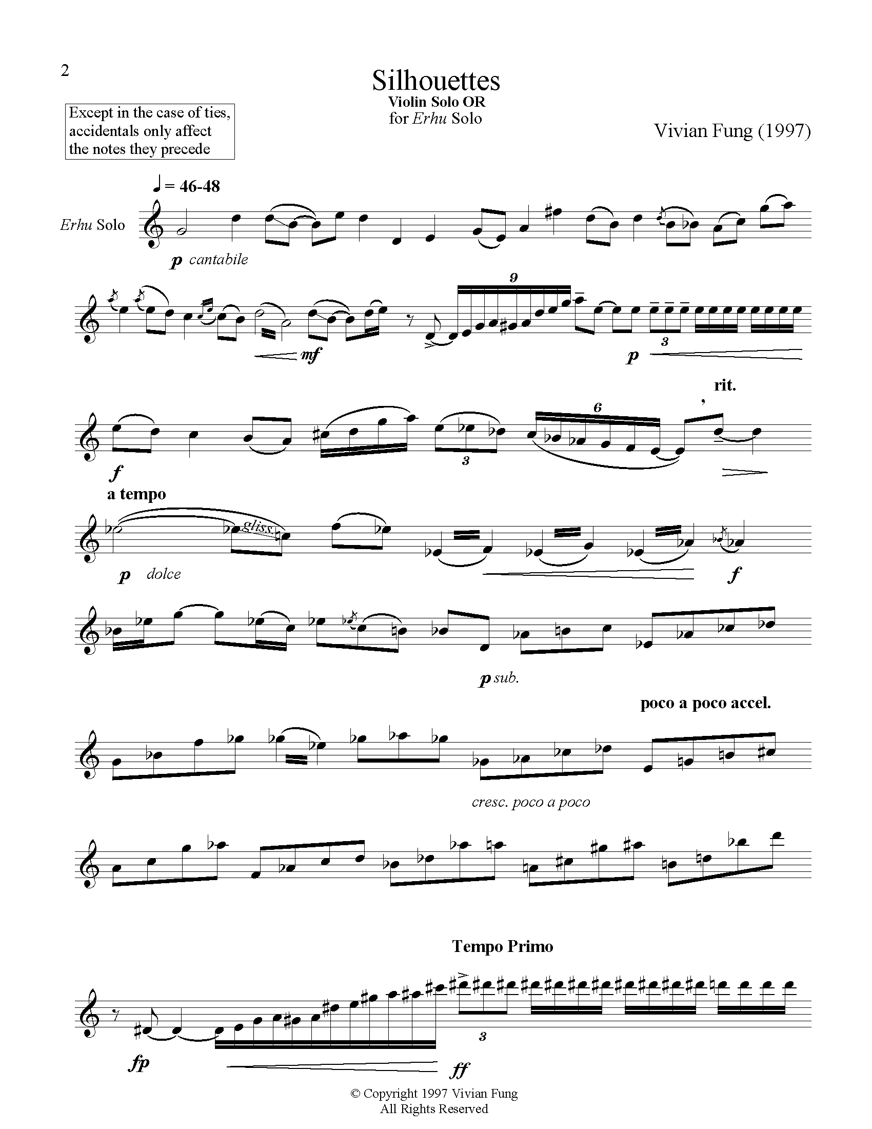 Instrumentation: Erhu or violin